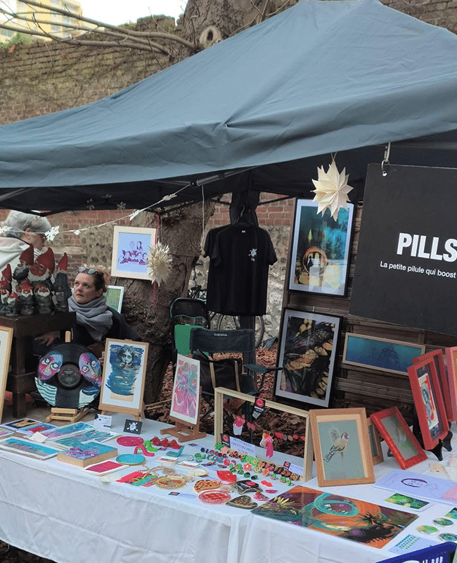 Ces trois dernières années, nous avons participé à l’Autre marché co-organisé par l’ARDES et le service ESS de la Ville de Rouen. Une dizaine d’artistes étaient représentés sur notre stand en novembre dernier. En 2025 nous avons tenu un stand lors du marché de Noël de La Base. Par ailleurs, nous avons organisé la deuxième édition du Marché de Noël Undreground de Pills les 20 et 21 Décembre 2024, trois concerts ont ponctué ce temps fort grâce aux soutiens de musiciens et groupes de musique locaux : Paulo Dabuns, Les fantômes, Genshoku Satori.